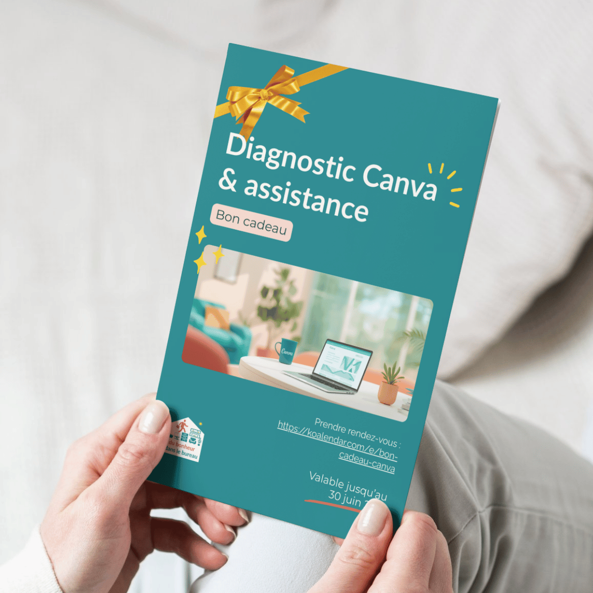 Après l’achat, tu reçois un bon cadeau personnalisé prêt à imprimer ou à envoyer par mail.